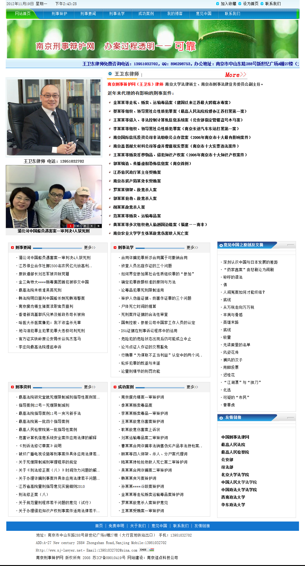 南京刑事辯護(hù)網(wǎng)由專業(yè)刑事辯護(hù)律師王衛(wèi)東創(chuàng)辦,本網(wǎng)站以刑事辯護(hù)為核心,內(nèi)容包括刑事辯護(hù)律師實(shí)務(wù)、刑事法學(xué)的最新研究成果、王衛(wèi)東律師的原創(chuàng)文章及對刑事辯護(hù)的思考。